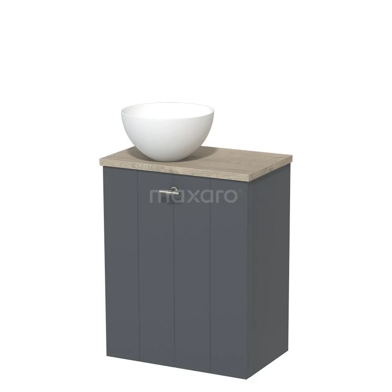 Toilet unit with countertop wash basin | 41 cm Dark grey Lamel front Matte white Solid surface wash basin Light grey oak worktop