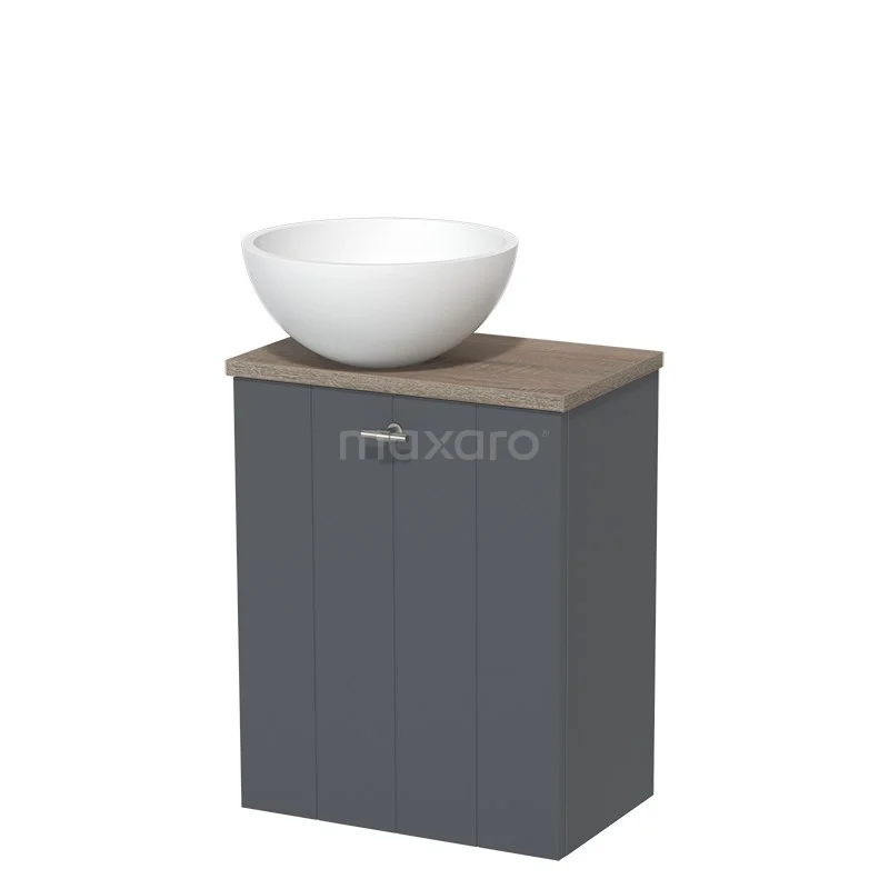 Toilet unit with countertop wash basin | 41 cm Dark grey Lamel front Matte white Solid surface worktop Oak fronts