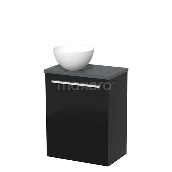 Toilet unit with countertop wash basin | 41 cm Flat front High-gloss black Matte white Solidtop wash basin Dark grey worktop