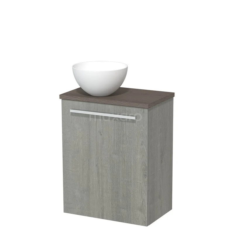 Toilet unit with countertop wash basin | 41 cm Grey oak Flat front Matte white Solidtop wash basin Dark brown oak worktop
