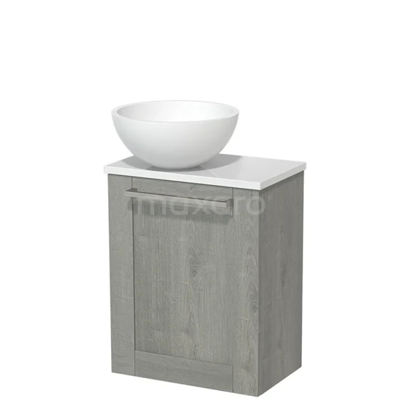 Toilet unit with countertop wash basin | 41 cm Grey oak Front Matte white Solidtop wash basin High-gloss white worktop