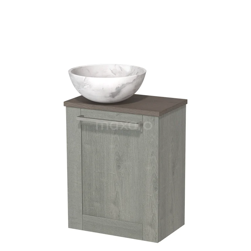 Toilet unit with countertop wash basin | 41 cm Grey oak Fronts White marble Natural stone countertop wash basin Dark brown oak worktop