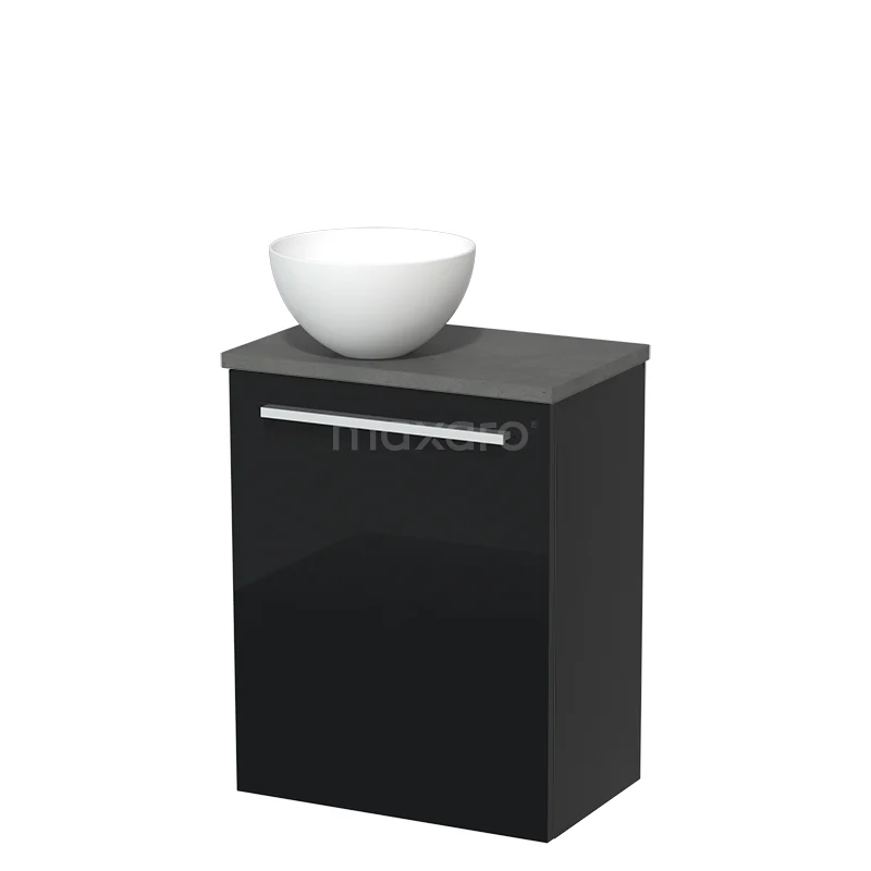 Toilet unit with countertop wash basin | 41 cm High-gloss black Flat front Matte white Solidtop wash basin Dark grey concrete worktop