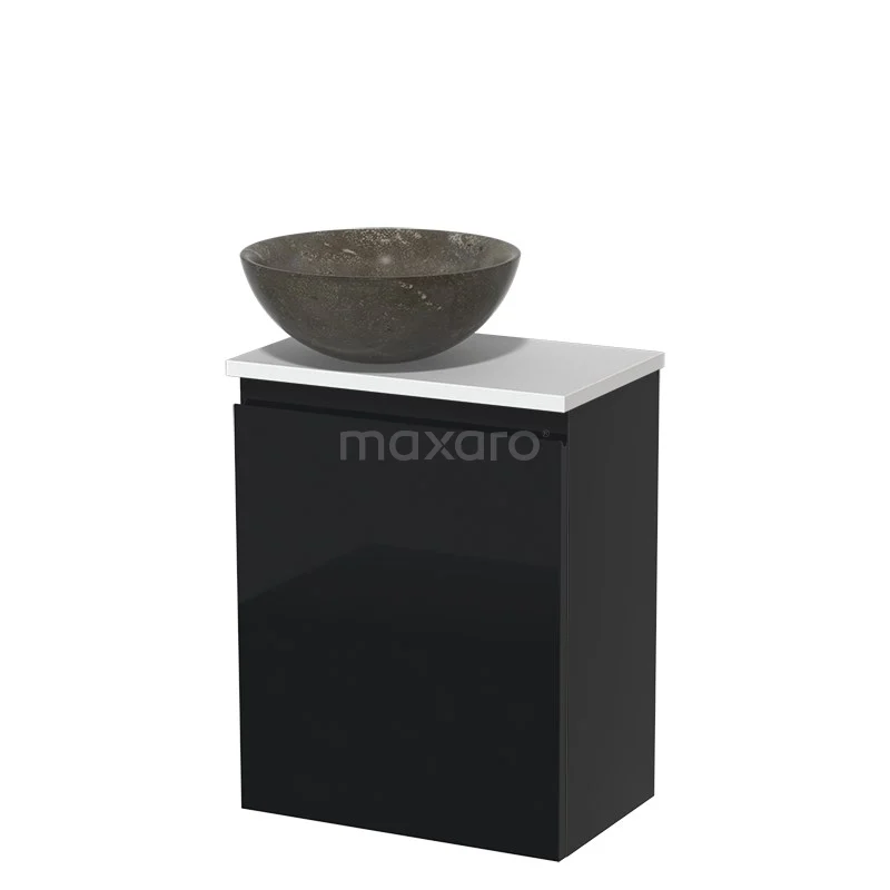 Toilet unit with countertop wash basin | 41 cm High-gloss black Handleless front Blue stone Natural stone Countertop wash basin Matte white worktop