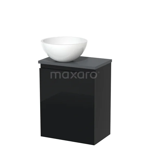 Toilet unit with countertop wash basin | 41 cm High-gloss black Handleless front High-gloss white Mineral marble basin Dark grey worktop