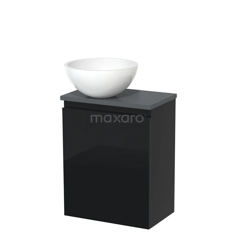 Toilet unit with countertop wash basin | 41 cm High-gloss black Handleless front High-gloss white Mineral marble basin Dark grey worktop