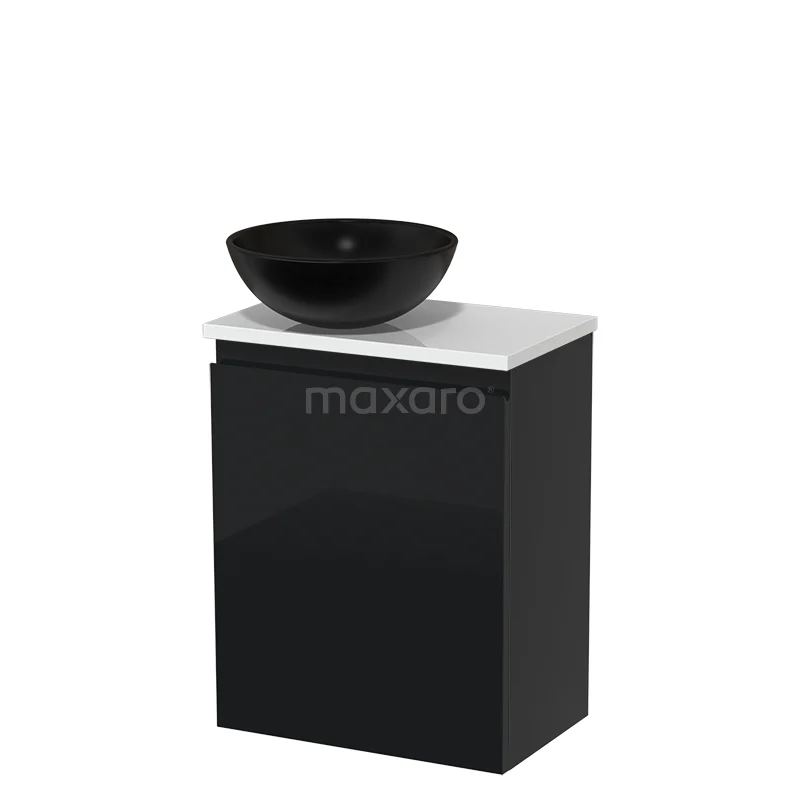 Toilet unit with countertop wash basin | 41 cm High-gloss black Handleless front Matte black Ceramic basin High-gloss white worktop