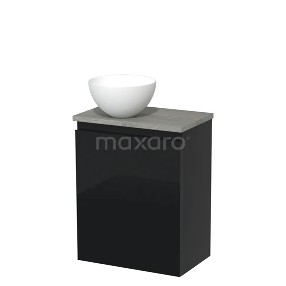 Toilet unit with countertop wash basin | 41 cm High-gloss black Handleless front Matte white Solid surface basin Grey oak worktop