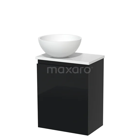 Toilet unit with countertop wash basin | 41 cm High-gloss black Handleless front Matte white Solid surface wash basin High-gloss white worktop