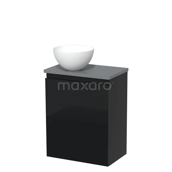 Toilet unit with countertop wash basin | 41 cm High-gloss black Handleless front Matte white Solid surface wash basin Mid grey worktop