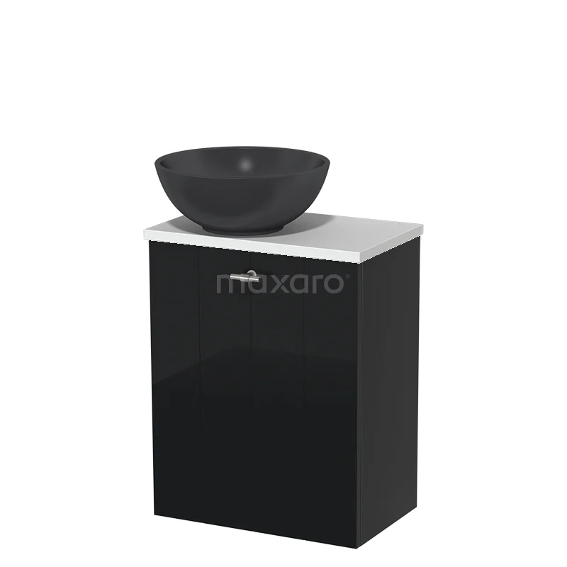 Toilet unit with countertop wash basin | 41 cm High-gloss black Lamel front Matte black Quartz wash basin High-gloss white worktop