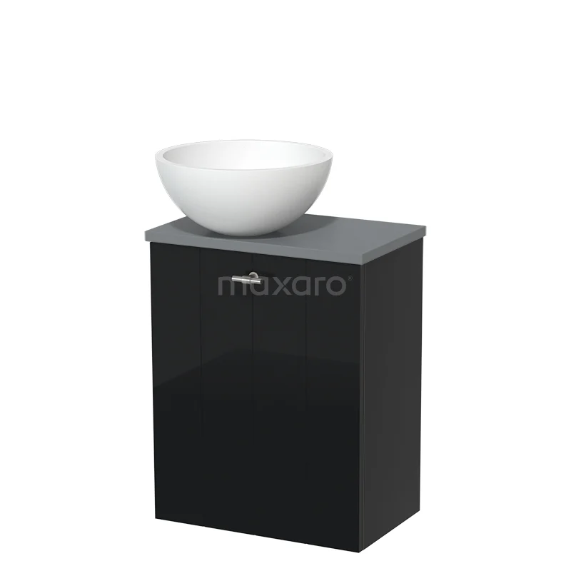 Toilet unit with countertop wash basin | 41 cm High-gloss black Lamel front Matte white Solidtop wash basin Mid grey worktop