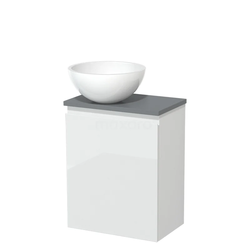 Toilet unit with countertop wash basin | 41 cm High-gloss white Handleless front High-gloss white Mineral marble countertop wash basin Mid grey worktop
