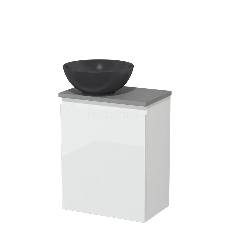 Toilet unit with countertop wash basin | 41 cm High-gloss white Handleless front Matte black Quartz wash basin Light grey concrete worktop