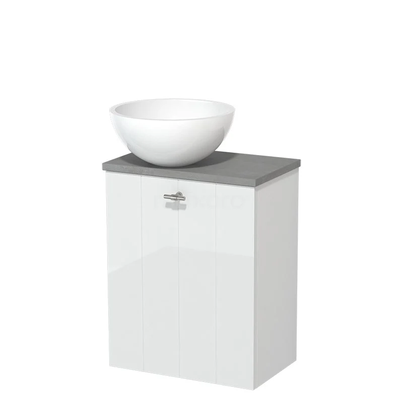 Toilet unit with countertop wash basin | 41 cm High-gloss white Lamel front High-gloss white Mineral marble countertop wash basin Light grey concrete worktop