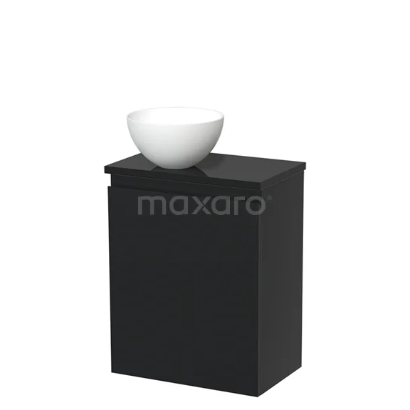 Toilet unit with countertop wash basin | 41 cm Matte black Handleless front Matte white Solid surface wash basin High-gloss black worktop