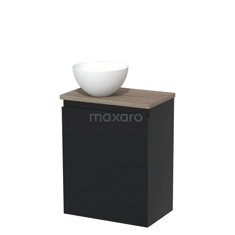 Toilet unit with countertop wash basin | 41 cm Matte black Handleless front Matte white Solid surface wash basin Oak worktop