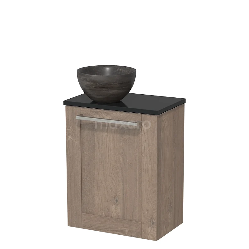 Toilet unit with countertop wash basin | 41 cm Mid brown oak Front Blue stone Natural stone countertop wash basin High-gloss black worktop