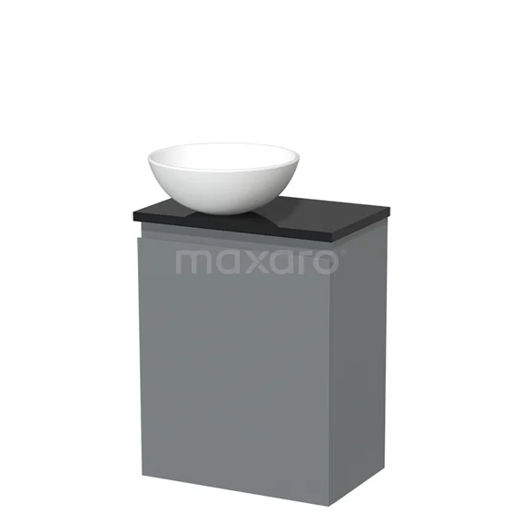 Toilet unit with countertop wash basin | 41 cm Mid grey Handleless front Matte white Ceramic basin High-gloss black worktop