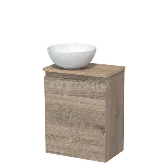 Toilet unit with countertop wash basin | 41 cm Oak Handleless front High-gloss white Ceramic countertop wash basin Light brown oak worktop