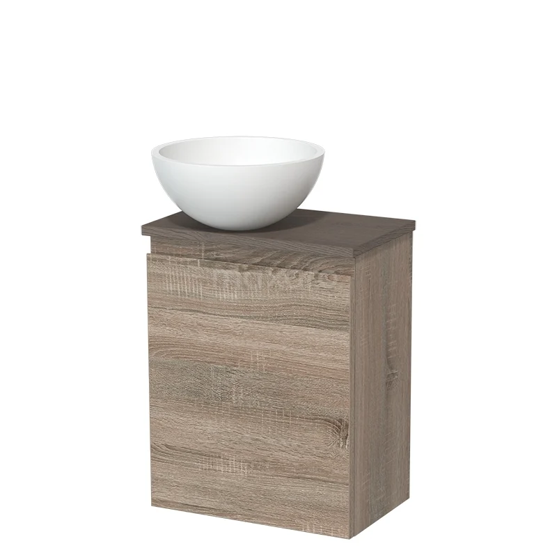 Toilet unit with countertop wash basin | 41 cm Oak Handleless front Matte white Solidtop wash basin Dark brown oak worktop