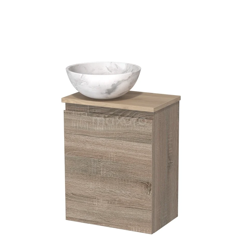 Toilet unit with countertop wash basin | 41 cm Oak Handleless front White marble Natural stone countertop wash basin Light brown oak worktop