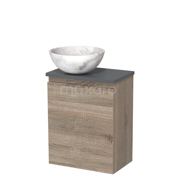 Toilet unit with countertop wash basin | 41 cm Oak Handleless front White marble Natural stone worktop Dark grey Fronts