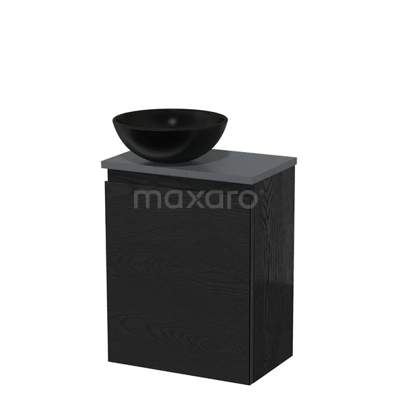 Toilet unit with wash basin | 41 cm Black oak Handleless front Matte black Ceramic wash basin Dark grey worktop