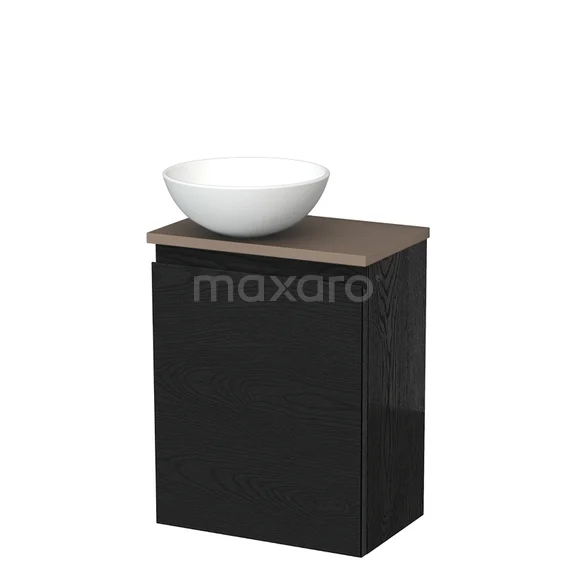 Toilet unit with wash basin | 41 cm Black oak Handleless front Matte white Ceramic countertop wash basin Taupe worktop