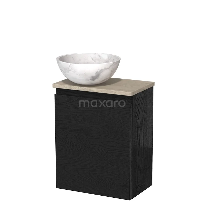 Toilet unit with wash basin | 41 cm Black oak Handleless front White marble Natural stone countertop wash basin Light grey oak worktop