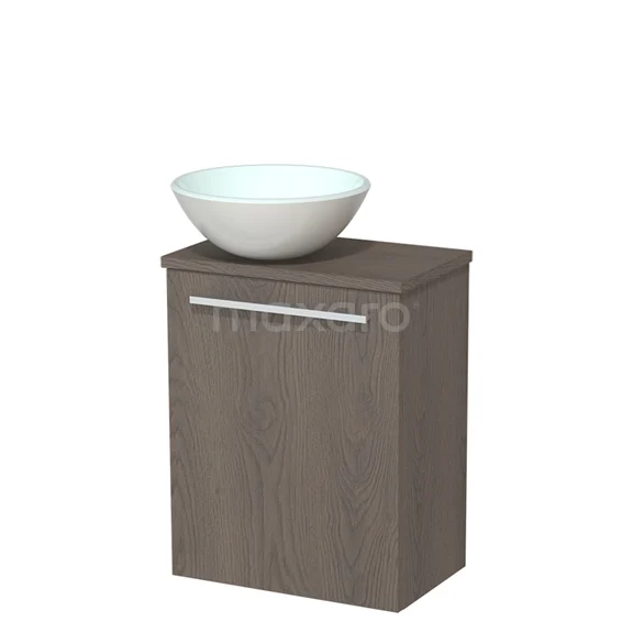 Toilet unit with wash basin | 41 cm Dark brown oak Flat front Matte white Countertop wash basin Dark brown oak worktop Frosted glass