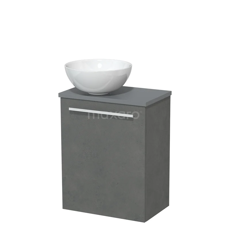 Toilet unit with wash basin | 41 cm Dark grey concrete Flat front High-gloss white Ceramic wash basin Mid-gloss white worktop