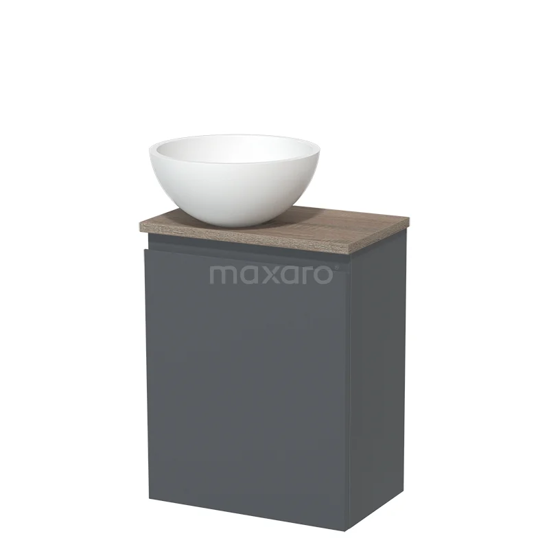 Toilet unit with wash basin | 41 cm Dark grey Handleless front Matte white Solidtop wash basin Oak worktop