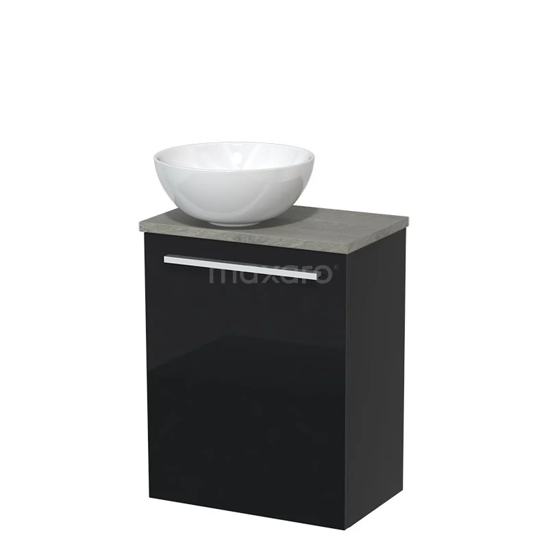 Toilet unit with wash basin | 41 cm Flat front High-gloss black High-gloss white Ceramic countertop wash basin Grey oak worktop