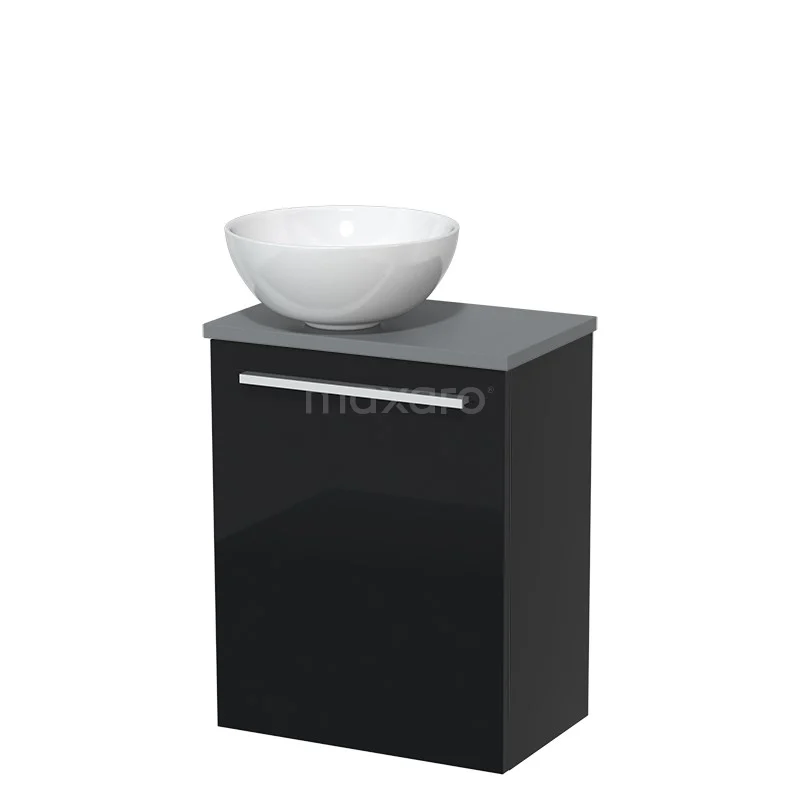 Toilet unit with wash basin | 41 cm Flat front High-gloss black High-gloss white Ceramic Countertop wash basin Mid grey worktop