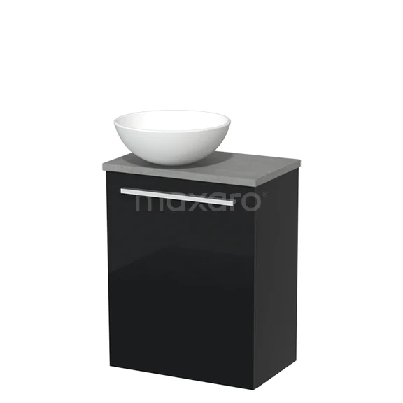 Toilet unit with wash basin | 41 cm Flat front High-gloss black Matte black Ceramic wash basin Light grey concrete worktop
