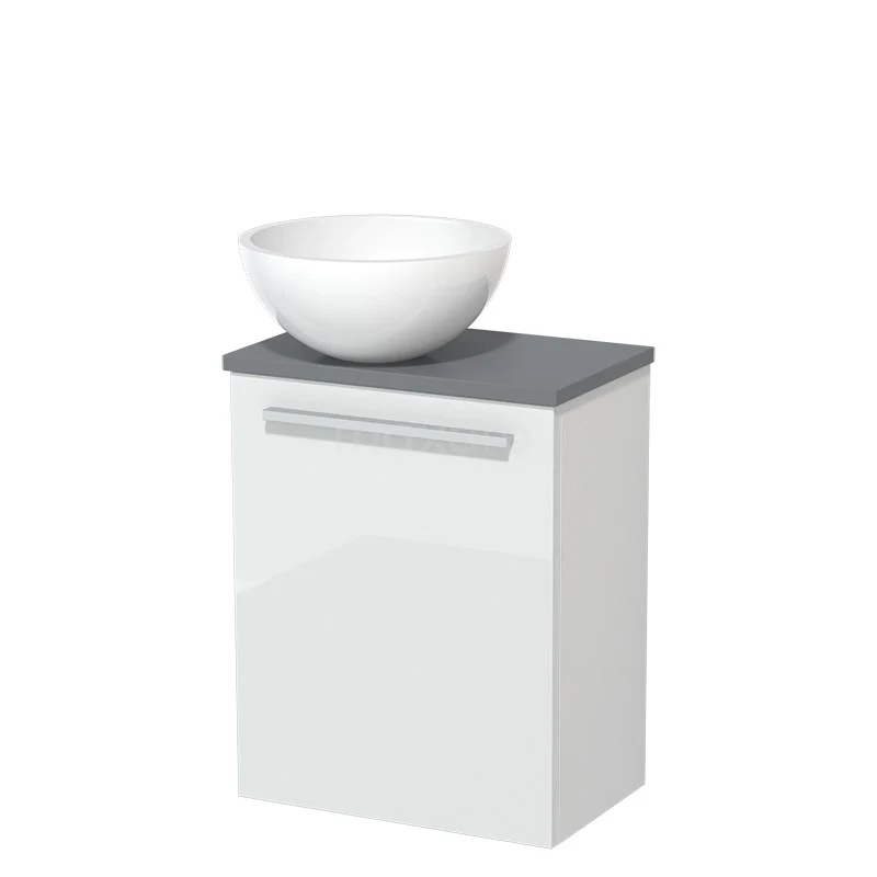 Toilet unit with wash basin | 41 cm Flat front High-gloss white Mineral marble countertop wash basin Mid grey worktop