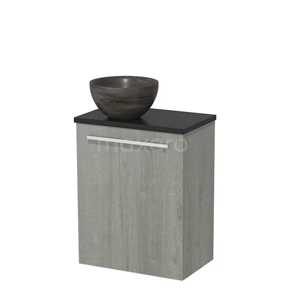 Toilet unit with wash basin | 41 cm Grey oak Flat front Blue stone Natural stone Countertop wash basin Matte black worktop