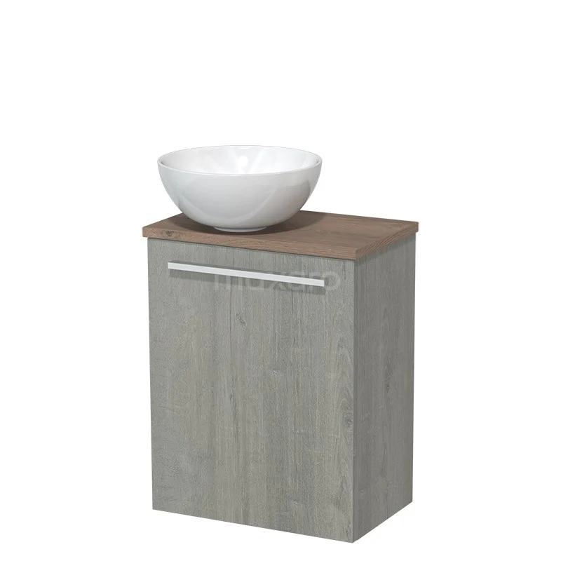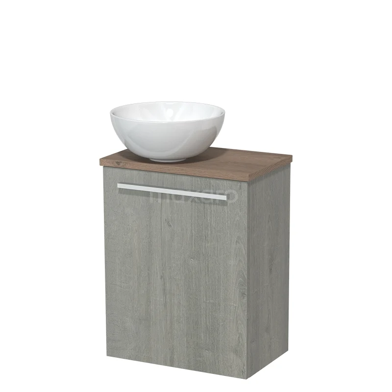 Toilet unit with wash basin | 41 cm Grey oak Flat front High-gloss white Ceramic Countertop wash basin Mid brown oak worktop