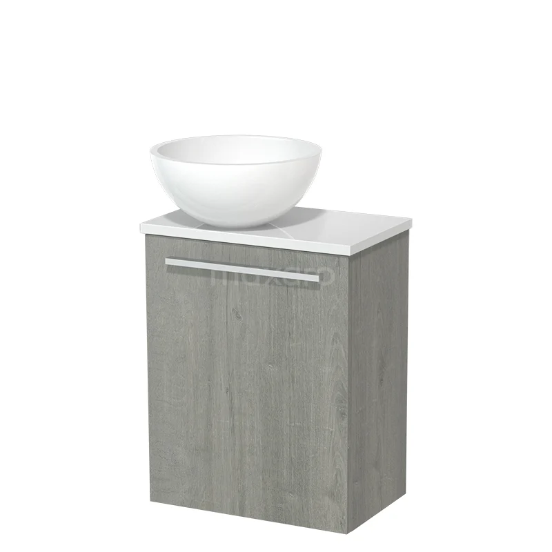 Stylish design Thanks to its beautiful design, the unit is an eye-catcher in the toilet area. The base cabinet has a grey oak finish with a grey oak basin worktop.