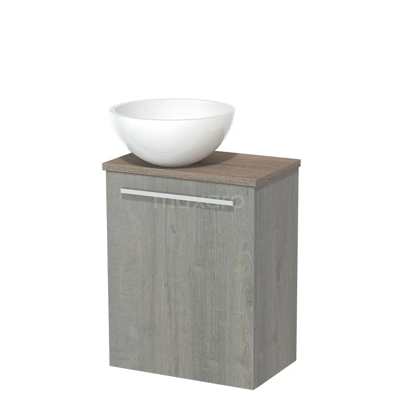 Toilet unit with wash basin | 41 cm Grey oak Flat front High-gloss white Mineral marble basin Worktop Oak