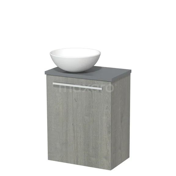 Toilet unit with wash basin | 41 cm Grey oak Flat front Matte white Ceramic Countertop wash basin Mid grey worktop