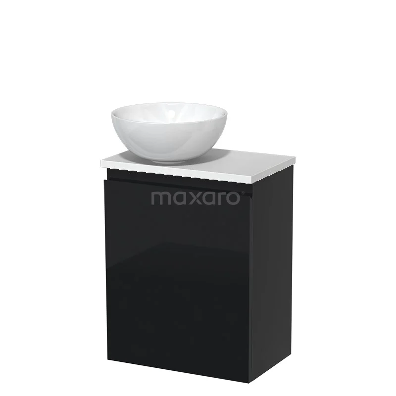 Toilet unit with wash basin | 41 cm High-gloss black Handleless front High-gloss white Ceramic countertop wash basin High-gloss white worktop