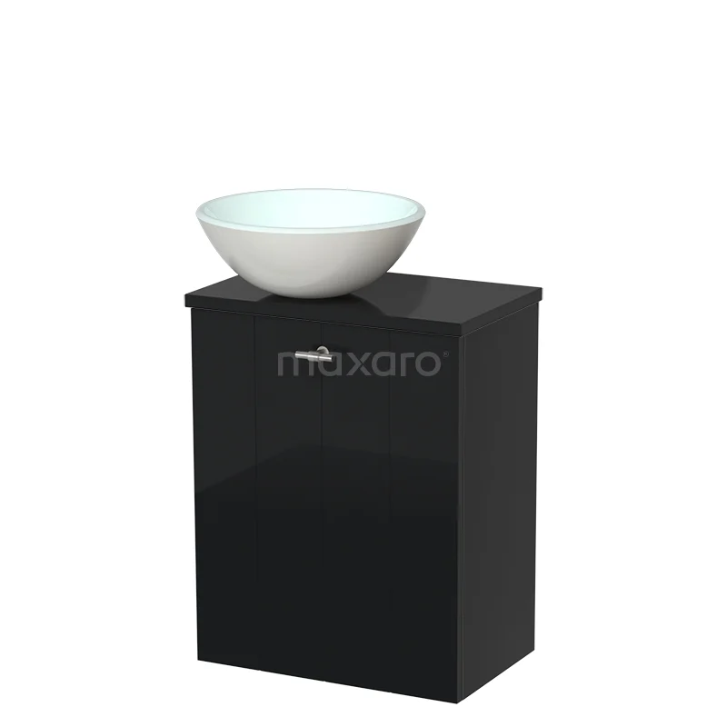 Toilet unit with wash basin | 41 cm High-gloss black Lamel front Matte white Glass countertop wash basin High-gloss black worktop