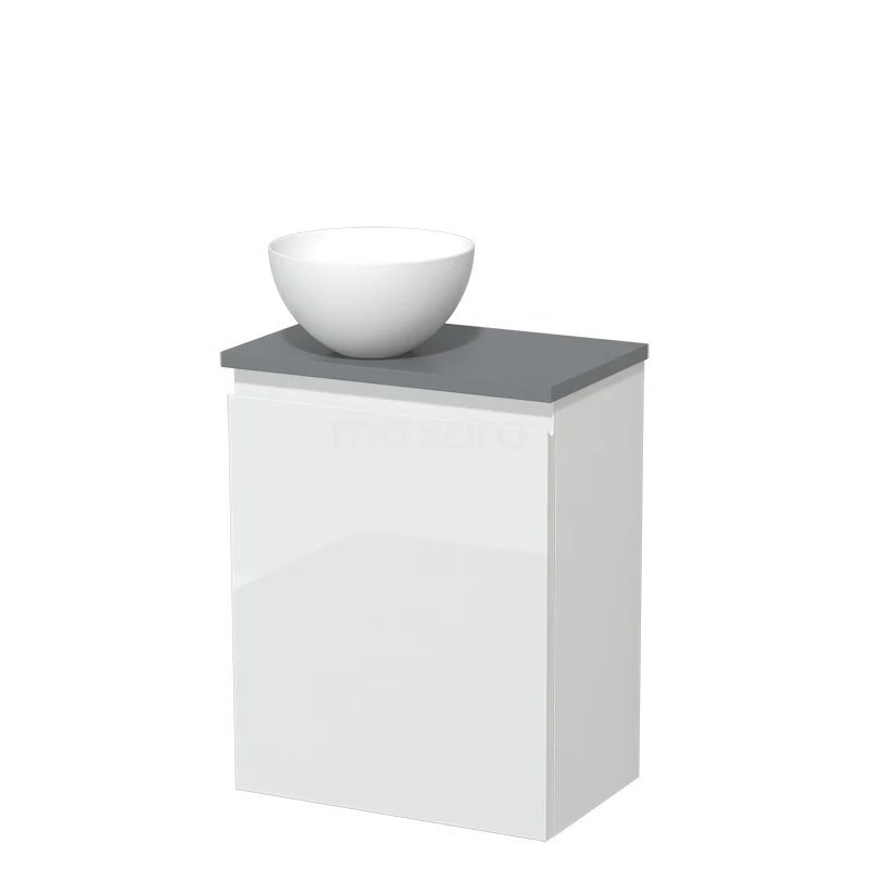 Toilet unit with wash basin | 41 cm High-gloss white Handleless front Matte white Solidtop wash basin Mid grey worktop