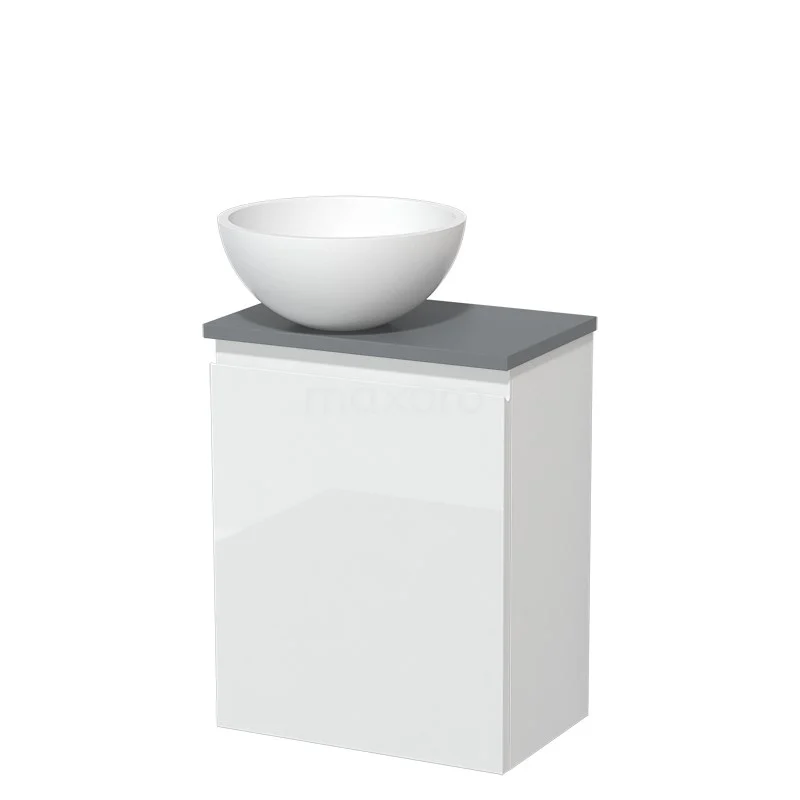 Toilet unit with wash basin | 41 cm High-gloss white Handleless front Matte white Solidtop wash basin Mid grey worktop