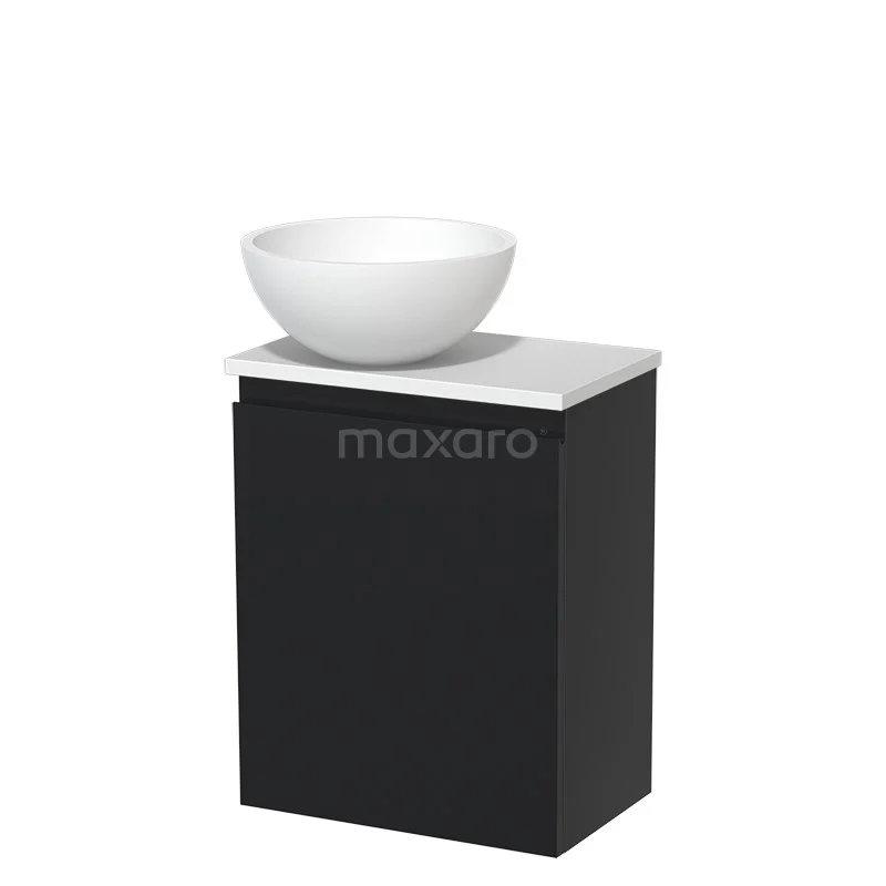 Toilet unit with wash basin | 41 cm Matte black Handleless front Matte white Solid surface wash basin Matte white worktop
