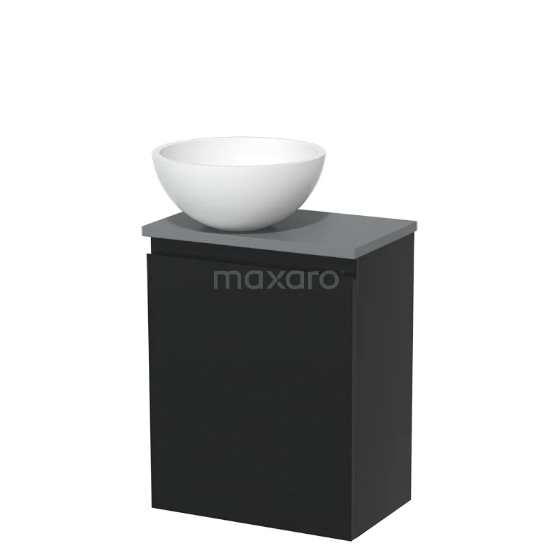 Toilet unit with wash basin | 41 cm Matte black Handleless front Matte white Solid surface wash basin Mid grey worktop