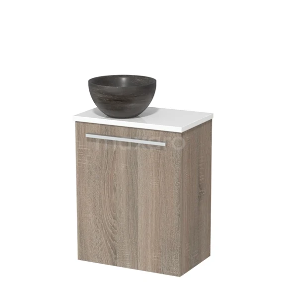 Toilet unit with wash basin | 41 cm Oak Flat front Blue stone Natural stone countertop wash basin High-gloss white worktop