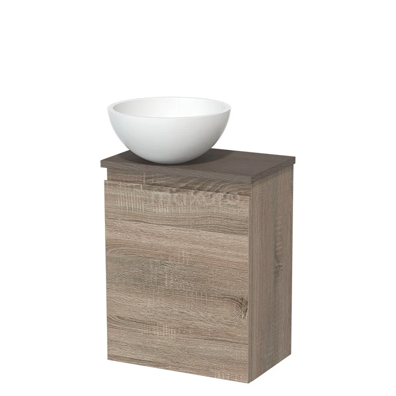 Toilet unit with wash basin | 41 cm Oak Handleless front Matte white Solidtop wash basin Dark brown oak worktop
